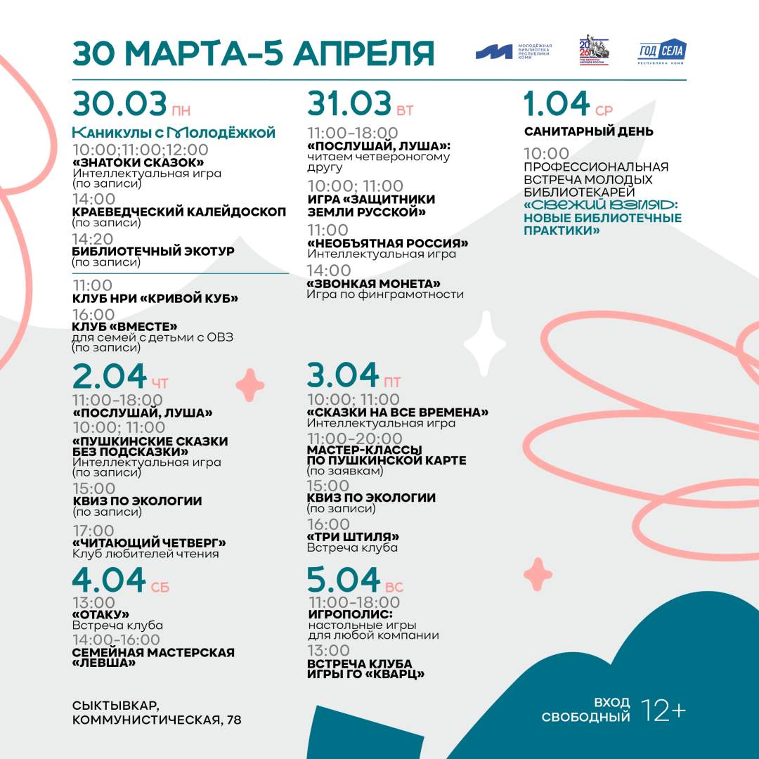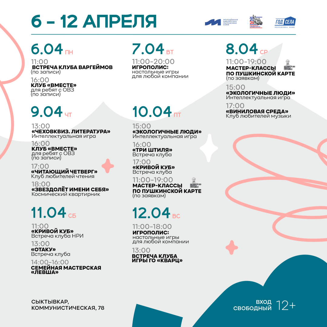 В апреле приглашаем сыктывкарцев и гостей столицы на встречи,