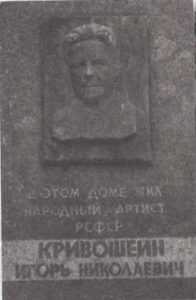 Текст на мемориальной доске: «В этом доме жил народный артист РСФСР Кривошеин Игорь Николаевич».