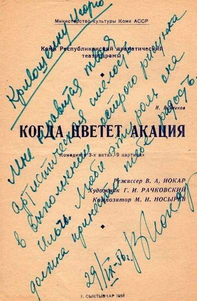 Тогда в Ухте открылся филиал Коми республиканского драматического театра под руководством коми актера и режиссера П.А. Мысова. Это была удача, и с 1943 года Игорь Николаевич – артист Ухтинского театра.