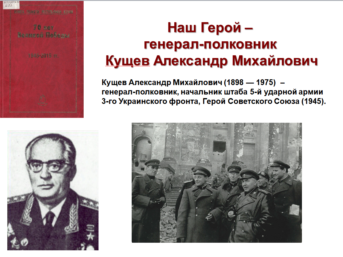 В 2025 г. получил дальнейшее развитие электронный ресурс на сайте МБРК «Наш Герой» https://unkomi.ru/nash-gerojj/, представляющий именные репортажи о Героях Советского Союза, участниках Великой Отечественной войны, живших в Республике Коми. Итогом поисковой деятельности сотрудников библиотеки стало внесение в базу «Нашего Героя» новых имён – летчиков Дальней авиации гвардии майора М.М. Кириллова и гвардии капитана В.И. Сафонова, генерал-полковника А.М. Кущева. В настоящее время в ресурсе представлена информация о 51 Герое Советского Союза, связавшем свою жизнь с Республикой Коми.