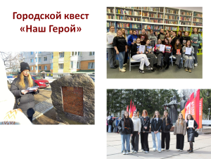 Большой интерес сыктывкарских студентов вызвали квесты «Наш Герой» по мемориальным объектам города, посвящённым участникам Великой Отечественной войны. Мероприятия проходили при активном участии волонтёров культуры. Городские квесты стали привлекательной формой изучения памятных мест г. Сыктывкара учащейся молодёжью.