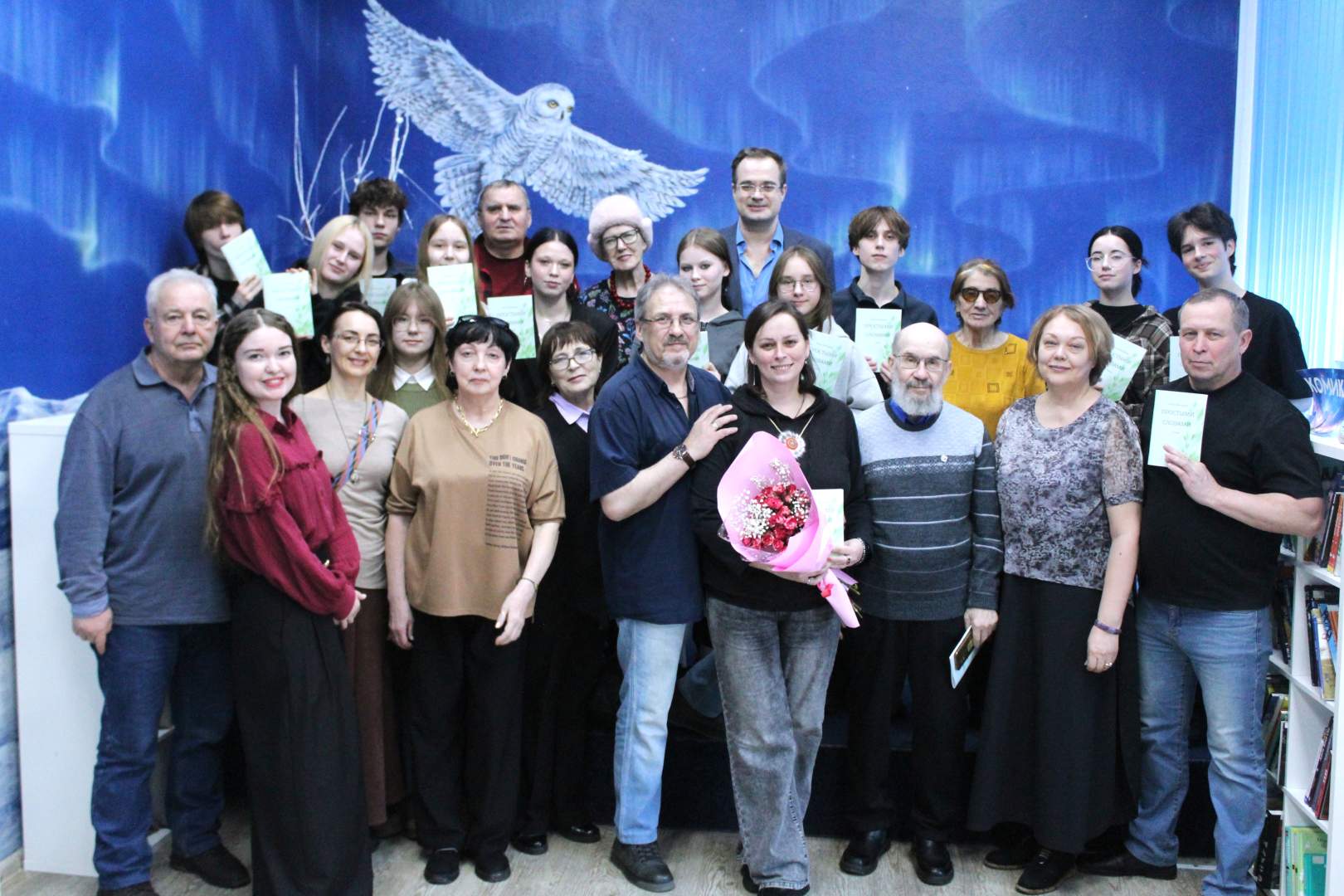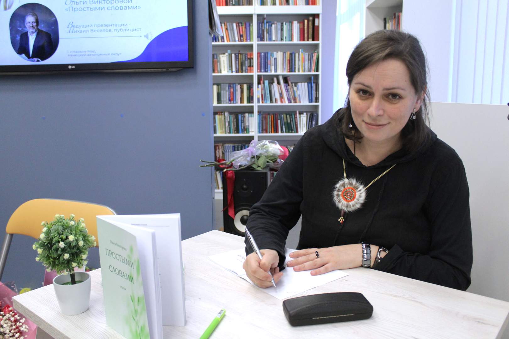 Ведущим творческой встречи стал Михаил Веселов, публицист, неоднократный победитель конкурсов «Золотое перо НАО» – и муж Ольги Викторовой. Он сумел создать яркую, дружелюбную атмосферу, встреча стала по-семейному уютной.