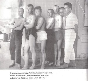 В 1926 году А.В. Прыгунов приступил к работе учителем физкультуры в Краснобаковской школе (с 1923 года село Баки стало называться Красными Баками). Он много внимания уделял спортивной работе не только в школе, но и в Краснобаковском уезде (в 1929 году уезд стал Краснобаковским районом). Молодой учитель создал первую футбольную команду и стал ее капитаном. Готовил молодежь к сдаче норм на значок БГТО, организовал первые спортивные секции в Красных Баках. В 1929 году Прыгунов уехал в Нижний Новгород и устроился на работу инструктором по спорту. Подготовился и успешно сдал вступительные экзамены в Ленинградский институт инженеров коммунального строительства (далее ЛИИКС). Окончив обучение в 1936 году, работал на Балахнинском бумажном комбинате, Горьковском автомобильном заводе. В мае 1941 года Александр уехал на строительство железной дороги Котлас-Воркута. Его активной жизненной позицией можно бесконечно восхищаться.