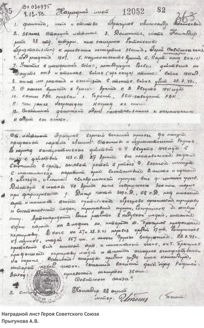 Александр Васильевич Прыгунов был удостоен звания Героя за беспримерный подвиг в Битве за Днепр.